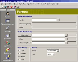 Die Faktura in Abosystem 4.0 teilt sich in drei Bereiche auf: