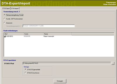 Abosystem 4.0 bietet Funktionen zum Export und Import von DTA-Dateien.
